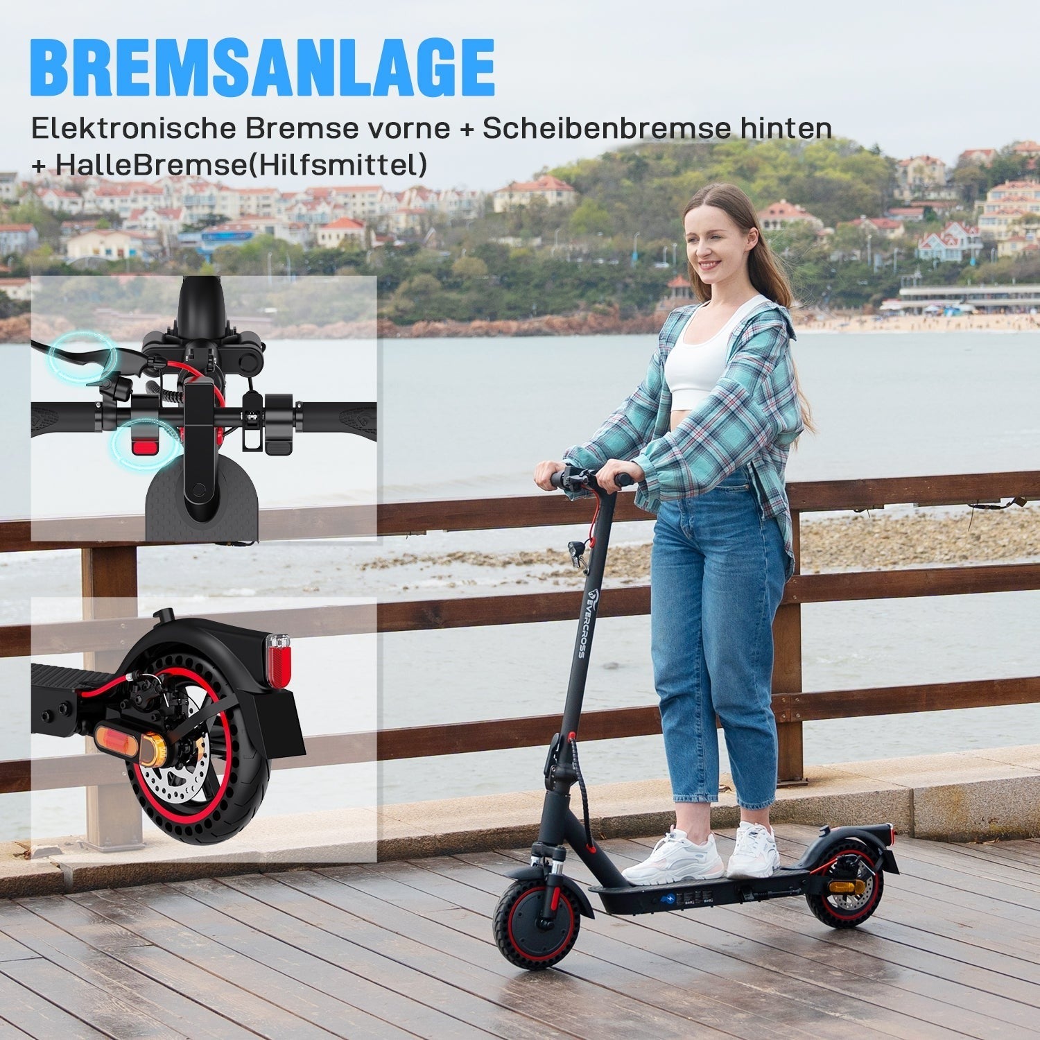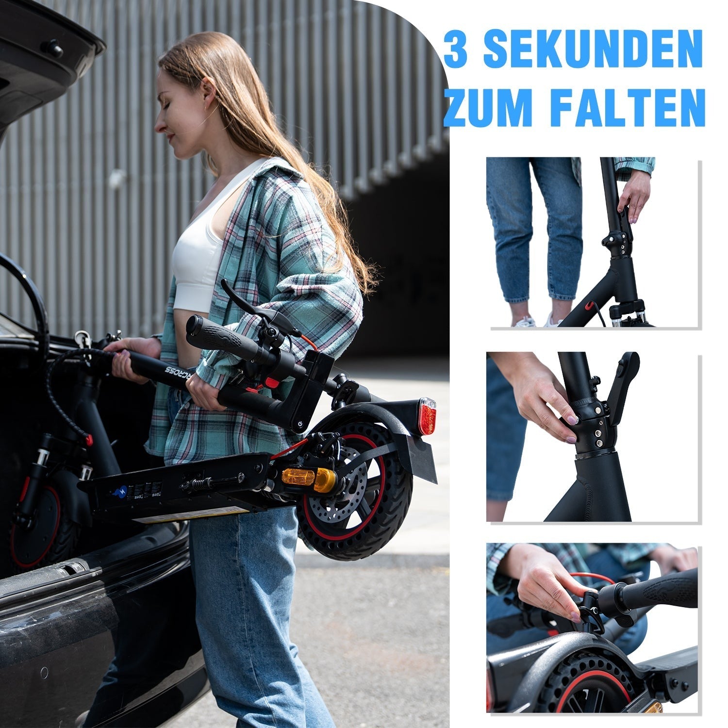 - Faltbarer E Scooter: Der E-Scooter kann zum einfachen Tragen zusammengeklappt werden.